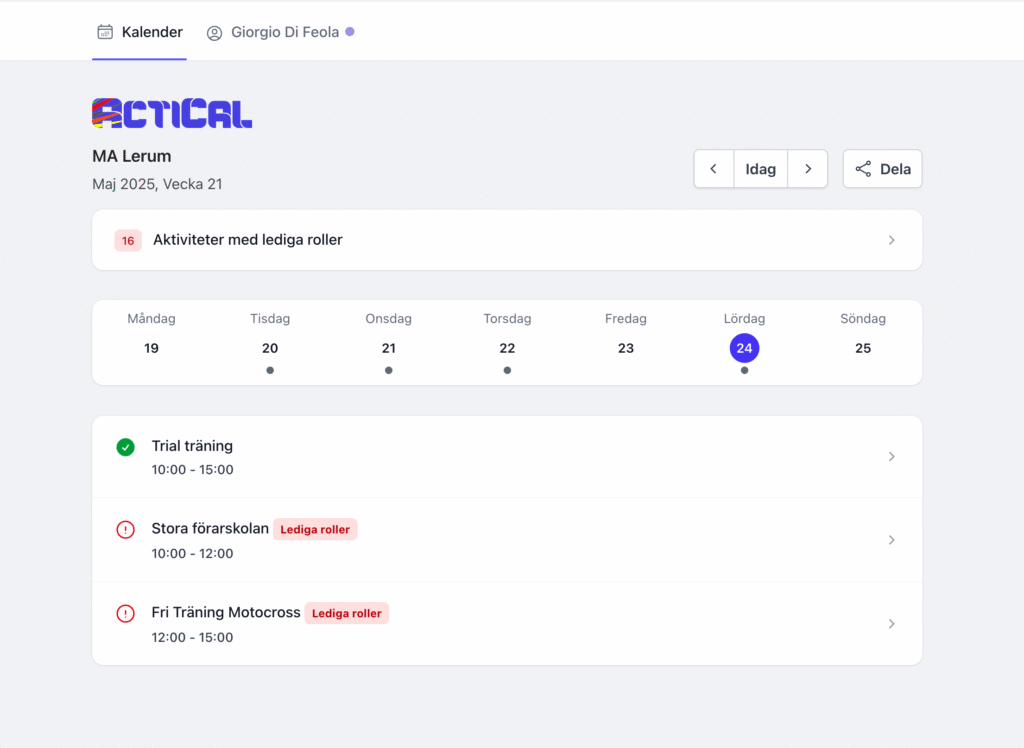Plan and manage your organizations activities with ActiCal. With clarity and self-service in focus you will see reductions in the administrative burden and increased engagement within the organization.