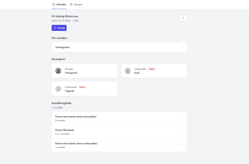 Organizers can sign up themselves or be signed up by an administrator. Keep track of who does what in which activity.